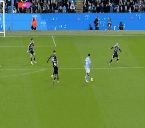 開場只有59秒,曼城就閃電領(lǐng)先。和B席做出精妙配合后,努內(nèi)斯倒三角傳中,福登四兩撥千斤,輕松將球打進。