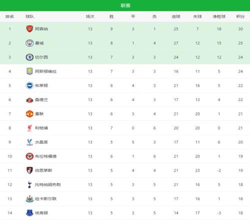 切爾西11阿森納!利物浦20!英超最新積分榜維拉曼聯(lián)逼近前三